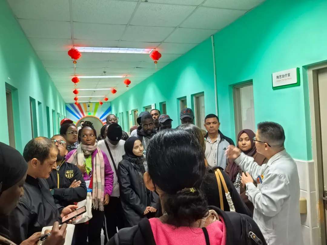当天下午,研修班成员首先参观了医院的正念静观医学中心。工作人员向客人们详细介绍了该病房的日常治疗服务开展情况。为了让国际友人有更直观的感受,病房还特别组织了一场八段锦体验活动。在舒缓的动作与呼吸调节中,研修班成员亲身体验了静观练习在情绪调节与心理治疗中的独特作用,对此表现出浓厚的兴趣。