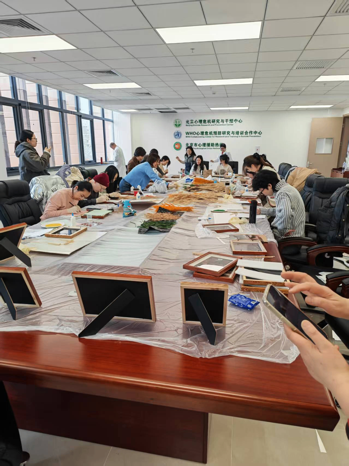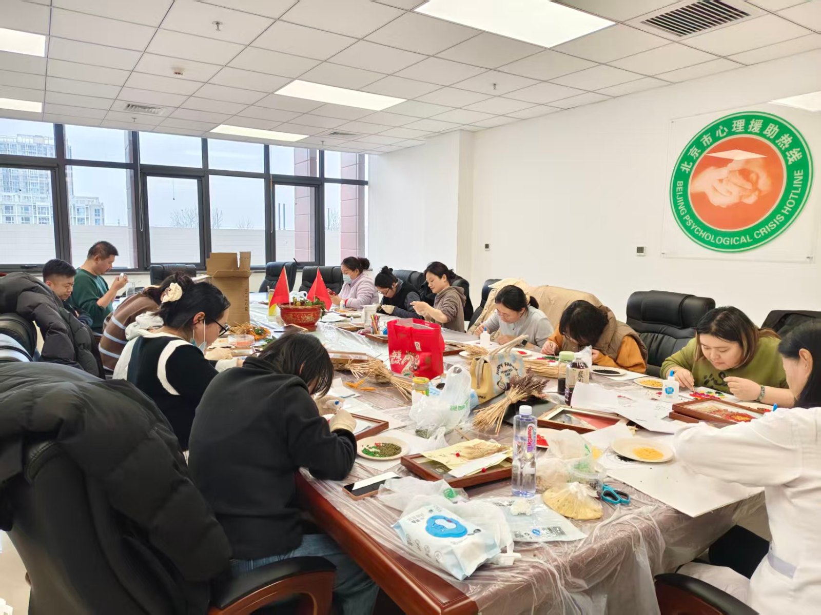 无论是倾听来电者的痛苦,还是做危机干预,都需要守护好我们每一位员工自己的身心。我们作为危机干预工作者长期承受着巨大的心理压力,职业倦怠是我们必须正视的挑战。领导始终高度重视每一位员工的身心健康,为了缓解员工的工作压力,梁红主任提议用在干预中心小院收获的小麦组织大家来一场新春团建,由郎俊莲和郑凤主持分批次(2月6日、2月27日下午14:00-16:00)的以麦为媒,五谷为笔记录从耕耘到收获到创作的奇妙转换。